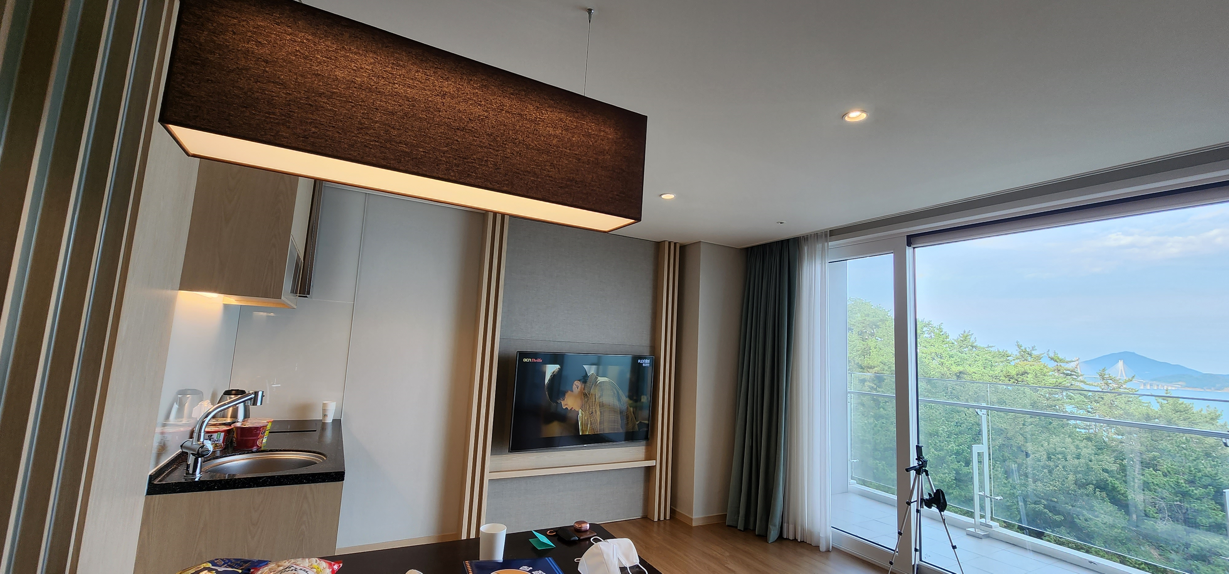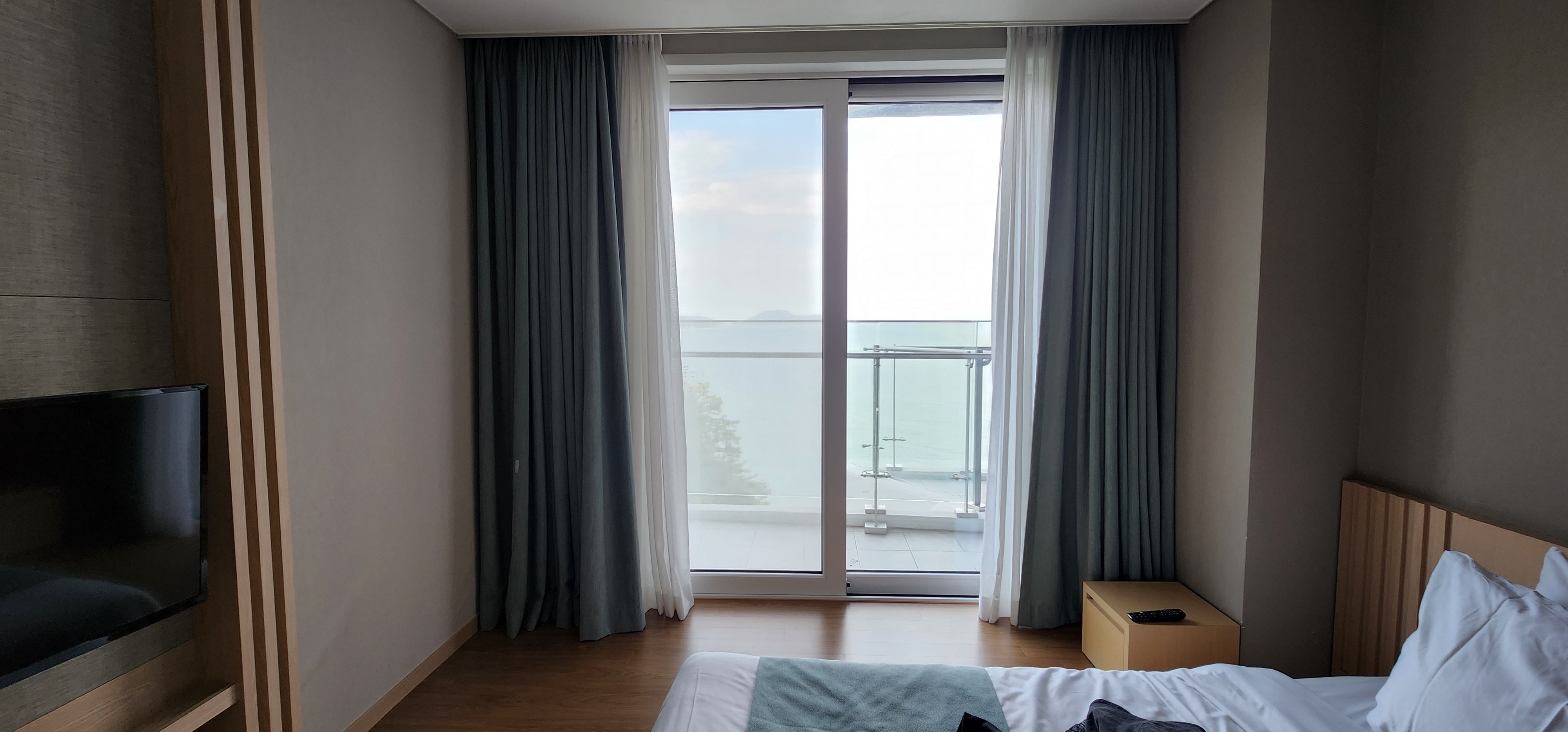 거제 벨버디어는 2018년 11월 오픈하여 아직 신축이어서 깨끗하다는 장점이 있고, 규모가 나름 크고 넓어 시원시원하다는 장점이 있습니다. 제가 이번에 예약한 룸은 스위트 오션뷰이었습니다. 오후 3시 정도에 도착하고 체크인하는데 늦게 도착했다고 남쪽 오션뷰(야외풀장 방향)는 이미 다 나가고, 거가대교 방면 오션뷰(동쪽 방면)만 있다고 해서 14층으로 체크인했습니다.