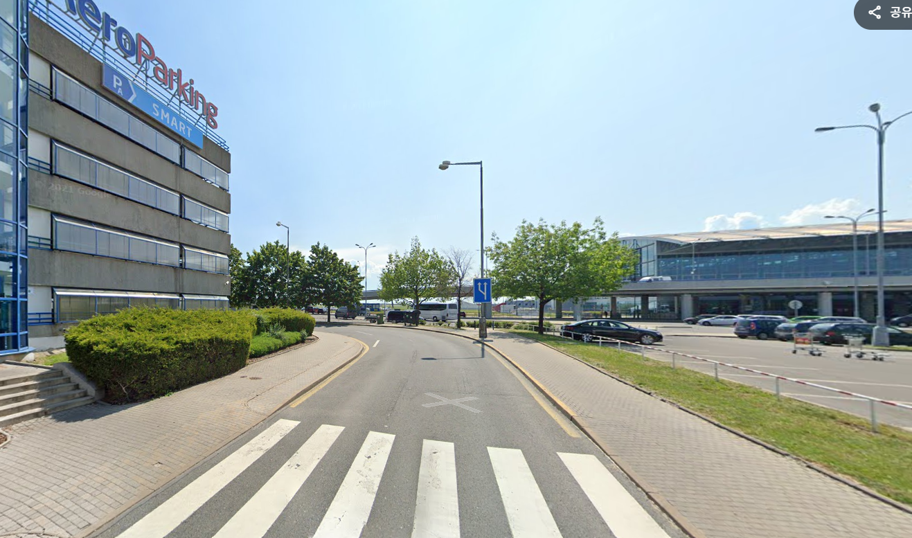공항 앞쪽이 공사 중이어서 약 300미터 정도 걸어서 주차장 건물 앞에서 버스를 타고 프라하시내로 이동했다.