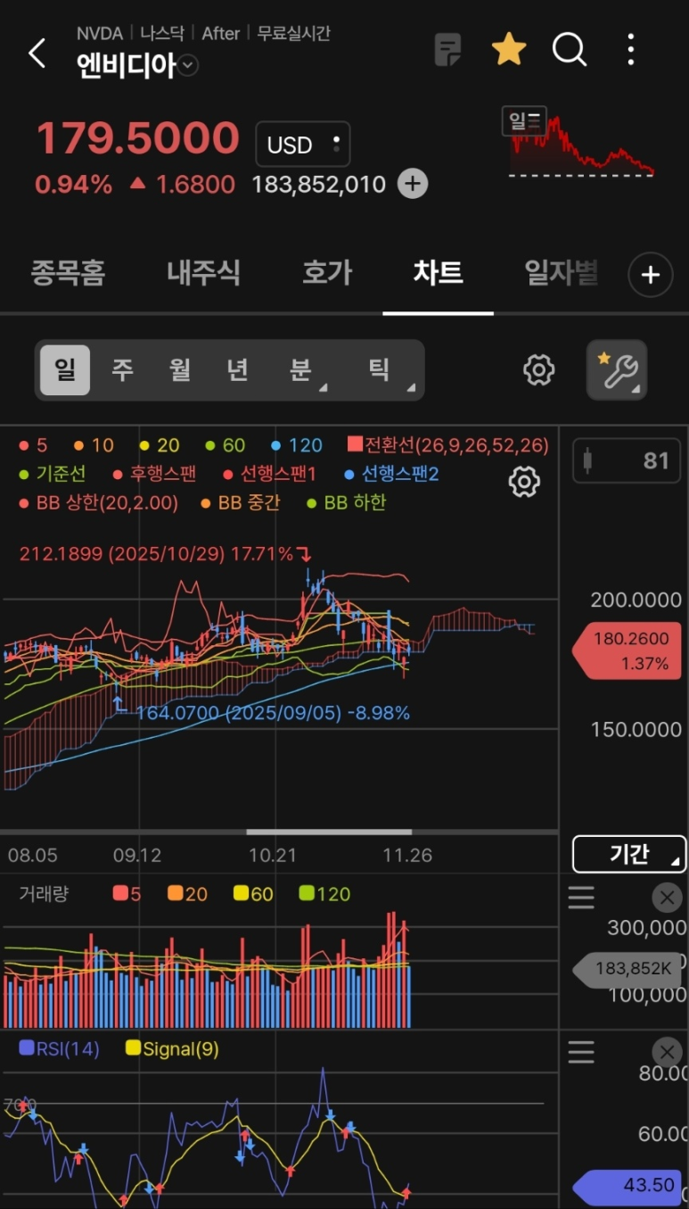 - 중기(몇 달): 중기 지지(주봉 구름/이평선) 유지하면 재상승 전환 — AI 수요·실적 호조가 이어지면 212달러 및 그 이상의 레벨 재시험 가능.