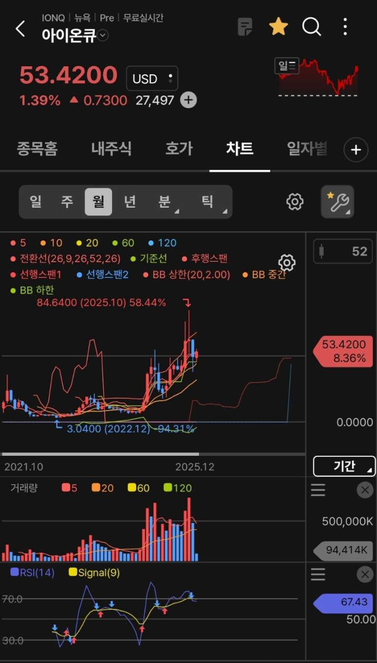 긍정적 시나리오 (Bull Case): 단기적으로 $55~$60 구간을 거래량을 동반하여 돌파한다면, 다시 전고점($80 이상)을 향한 랠리가 시작될 수 있습니다. 특히 기술적 이정표(AQ 달성 뉴스)나 대형 계약 공시가 나오면 탄력이 붙을 것입니다.