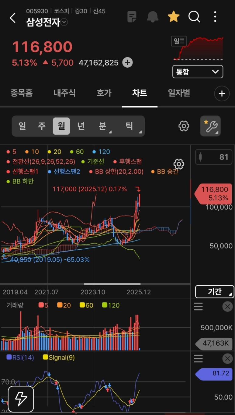 월봉상으로도 볼린저 밴드 상단을 강하게 돌파하고 있어, 기술적으로는 '지금이 가장 싼 구간일 수도 있다'는 해석이 가능한 대세 상승 초입 국면입니다.
