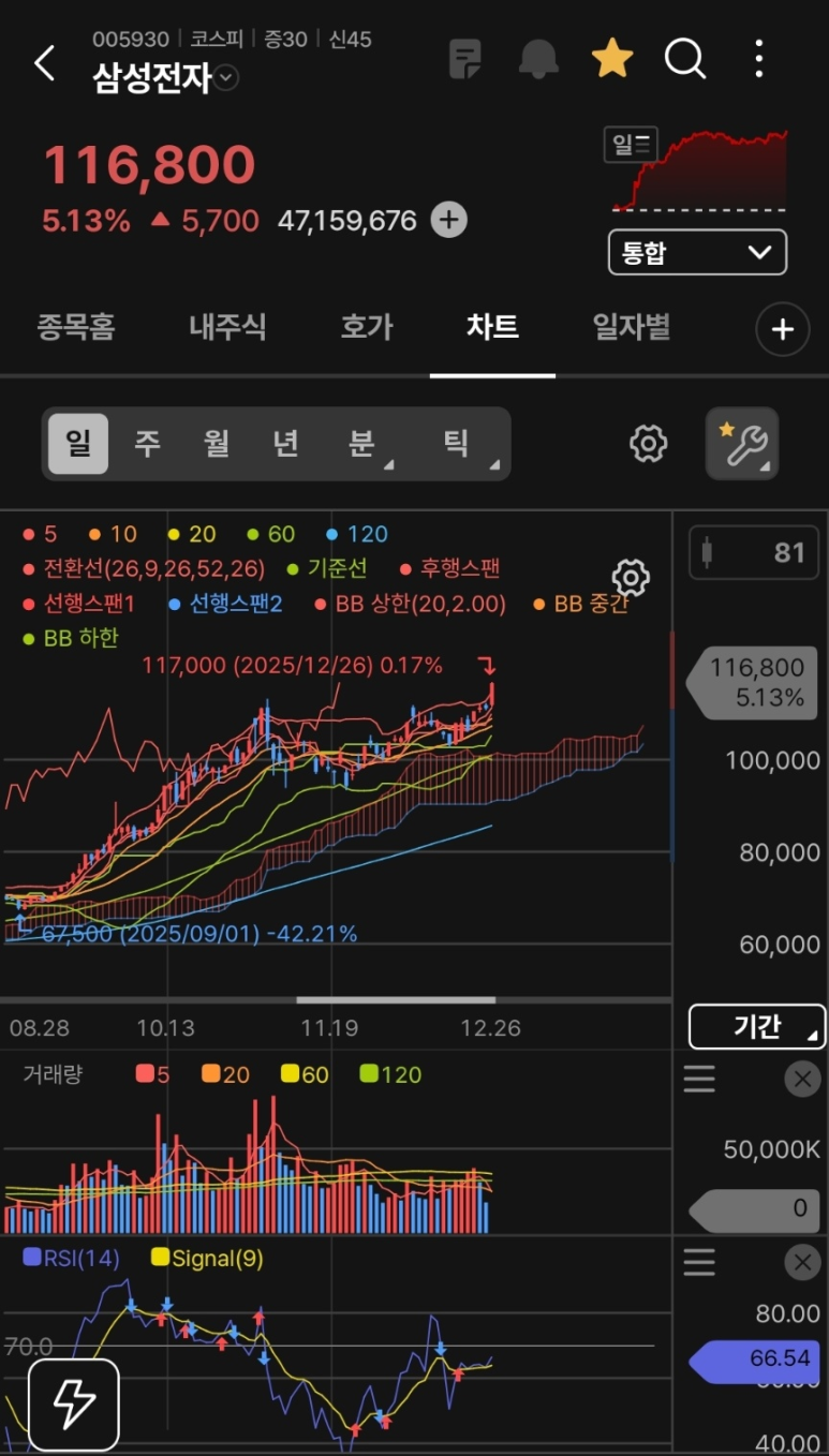 2025년 12월 26일 금요일, 삼성전자는 전일 대비 5.22% 상승한 116,900원으로 장을 마감하며 투자자들에게 뜨거운 연말 선물을 안겨주었습니다.