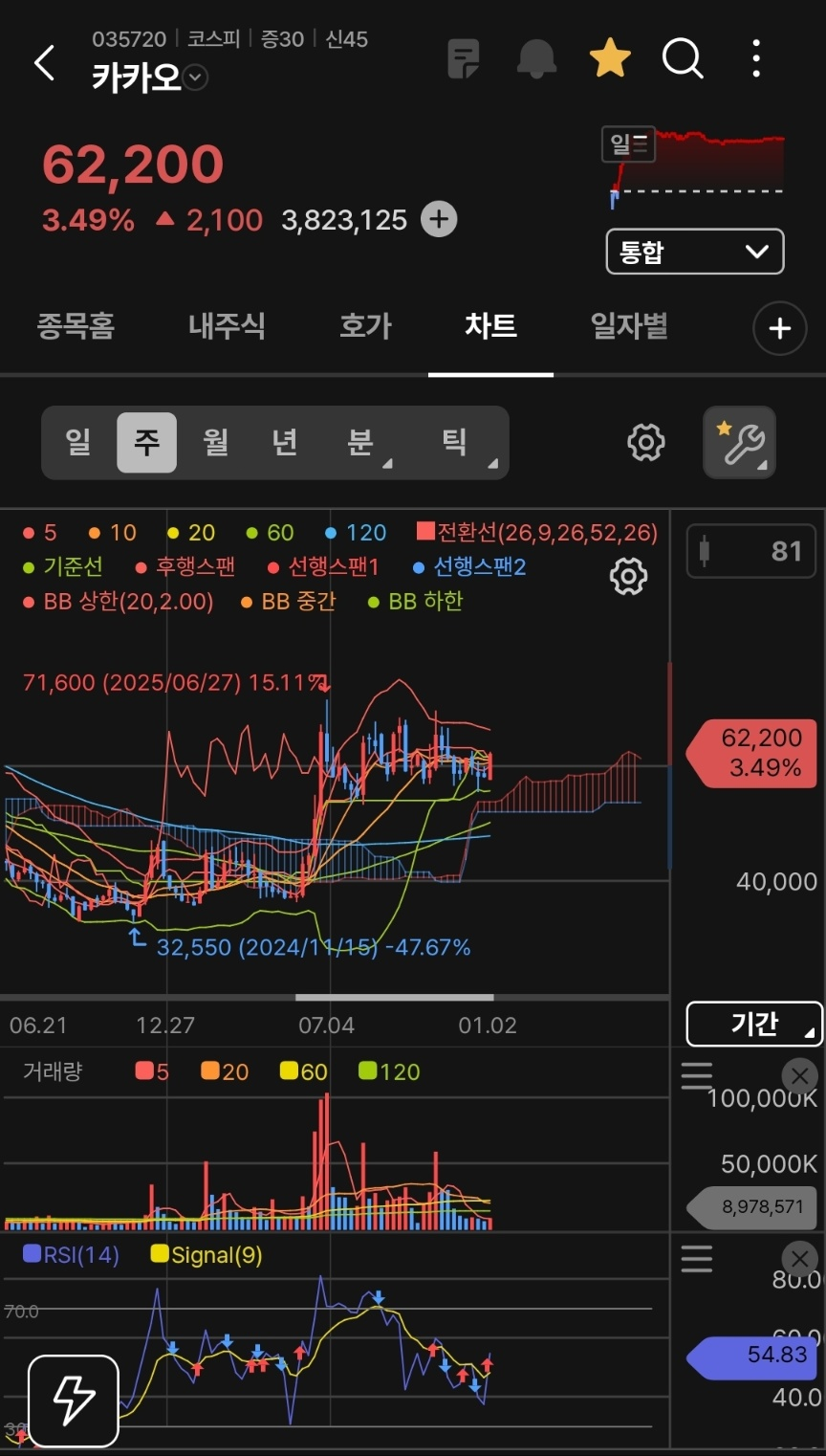 카카오에 대해 분석하고 다시 한번 도전해 보려 기회를 노려봅니다.