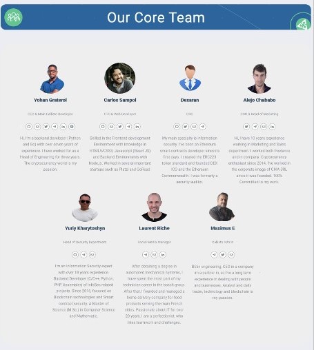 칼리스토 팀은 아래 사진과 같습니다. 쟁쟁한 개발팀입니다. 얼굴이 없는 덱사란은 이더리움 개발자이기도 합니다. 이 얼굴들만 봐도 믿음이 가네요.